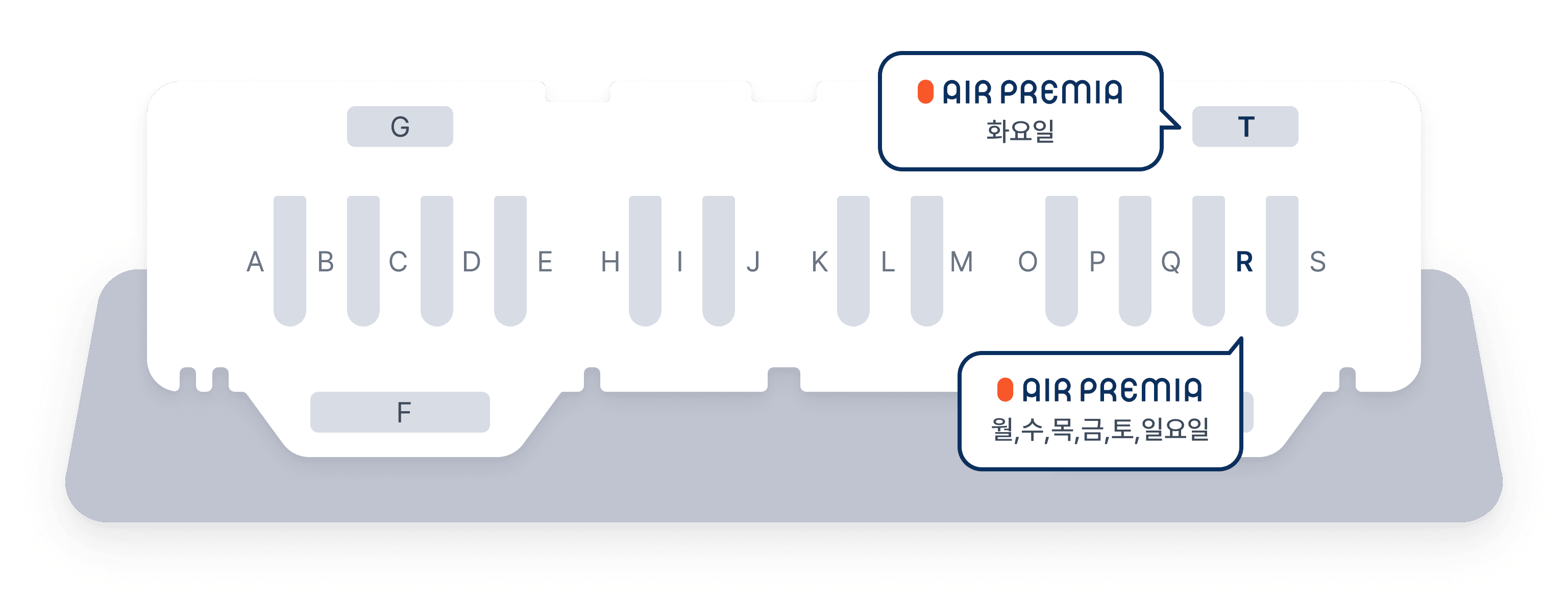 (월,수,목,금,토,일요일) R 카운터 (화요일) T 카운터 *체크인카운터는 변경될 수 있으며, 반드시 당일 공항에서 확인하여 주시기 바랍니다.